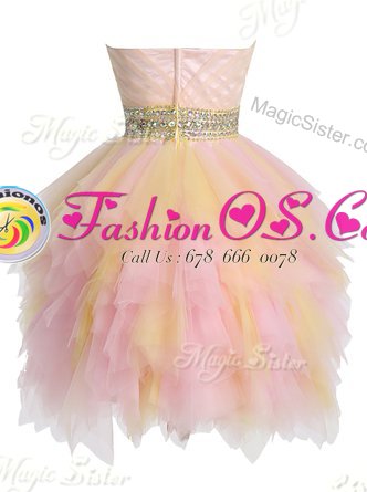 Classical Ruffled Sweetheart Sleeveless Zipper Prom Gown Multi-color Tulle