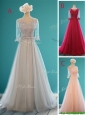 Classical Scoop Half Sleeves Bridesmaid Dresses with Appliques and Belt