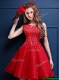 Classical Scoop Red Prom Dresses  with Appliques and Beading