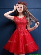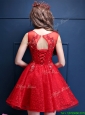Classical Scoop Red Prom Dresses with Appliques and Beading