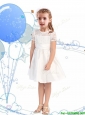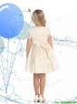 Classical Scoop Short Sleeves Champagne Flower Girl Dress with Lace and Belt