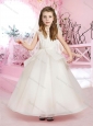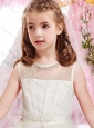 Classical See Through Ankle Length Flower Girl Dress with Belt and Lace