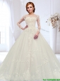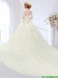 Classical See Through Court Train Beaded Wedding Dress with Zipper Up