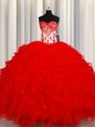 Home >  Quinceanera Dresses >  Popular Quinceanera Dresses > Classical Sequins Sweetheart Sleeveless Lace Up Quinceanera Dresses Red Organza