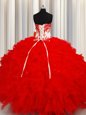 Classical Sequins Sweetheart Sleeveless Lace Up Quinceanera Dresses Red Organza