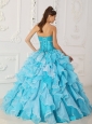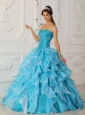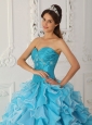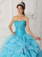 Home >  Quinceanera Dresses >  Pretty Quinceanera Dresses > Classical Sky Blue Quinceanera Dress Sweetheart Taffeta and Organza Beading A-Line / Princess