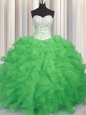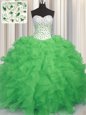 Classical Sleeveless Beading and Ruffles Floor Length Quince Ball Gowns