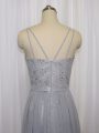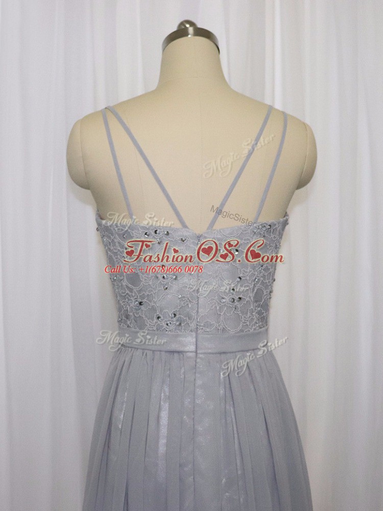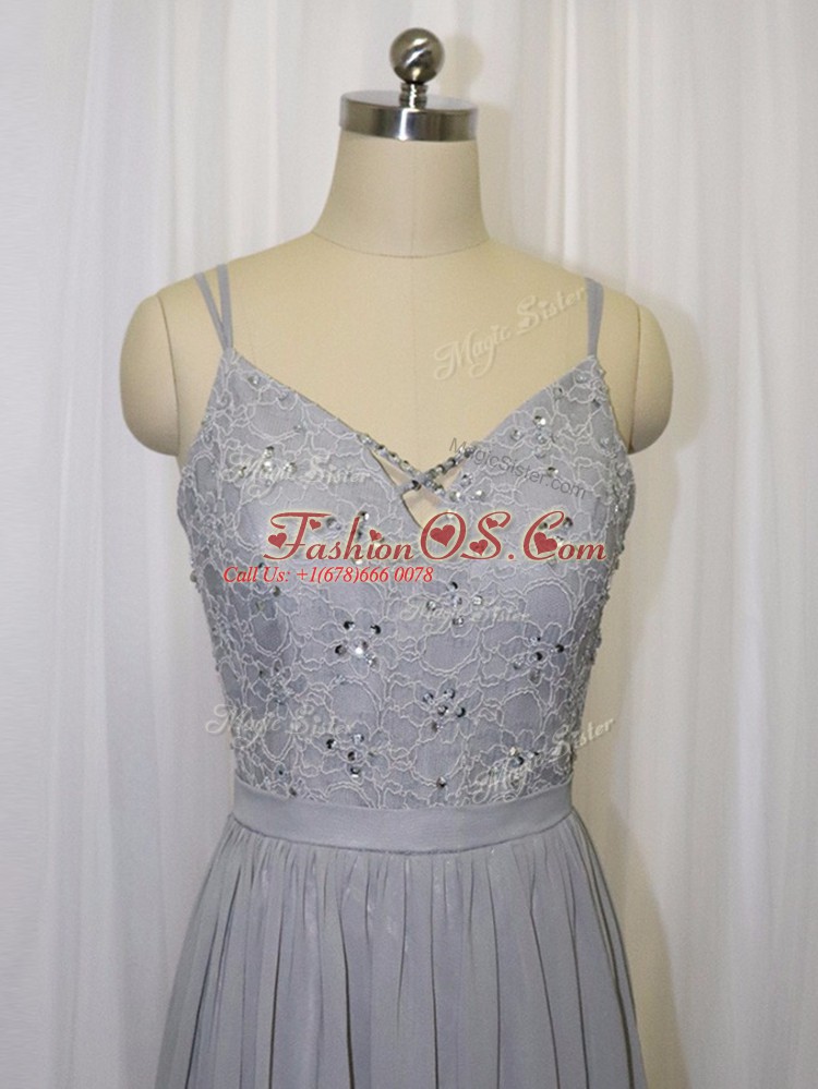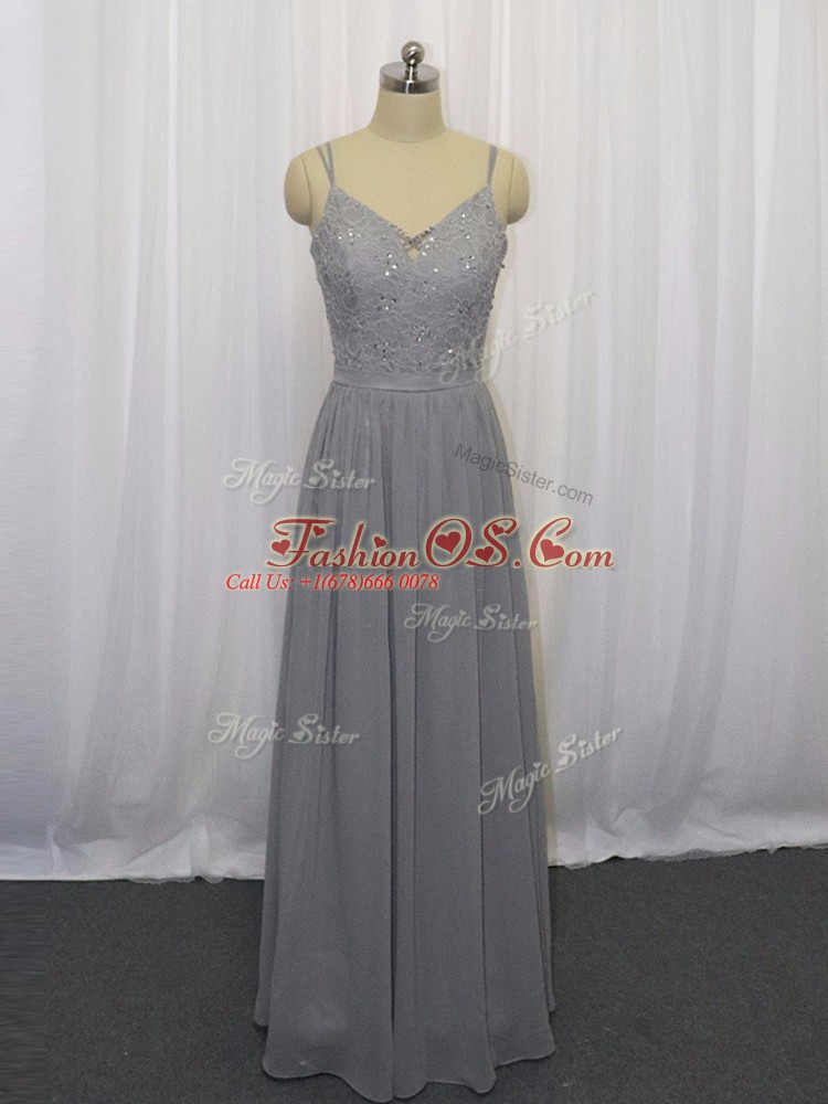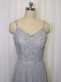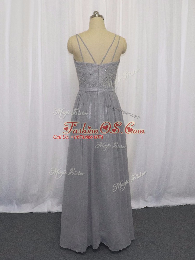 Classical Sleeveless Floor Length Beading and Lace Zipper Prom Party Dress with Grey