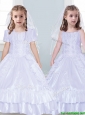 Classical Spaghetti Straps Taffeta Flower Girl Dress with Beading and Lace