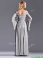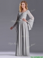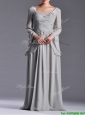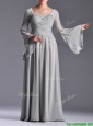 Classical Square Beaded and Ruched Mother of the Bride Dress with Long Sleeves