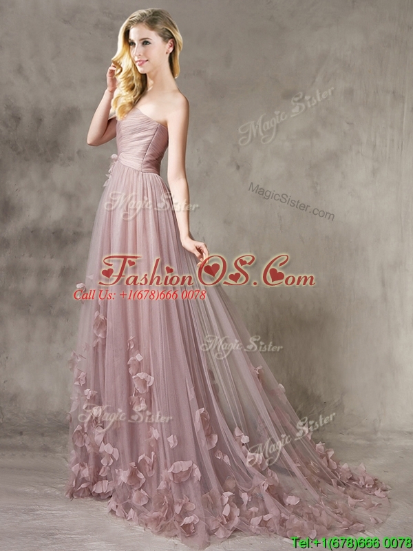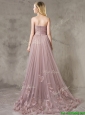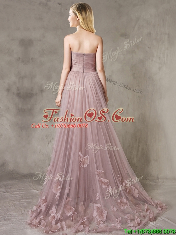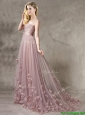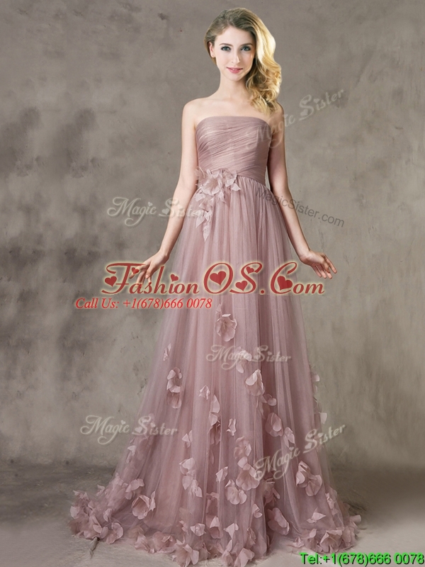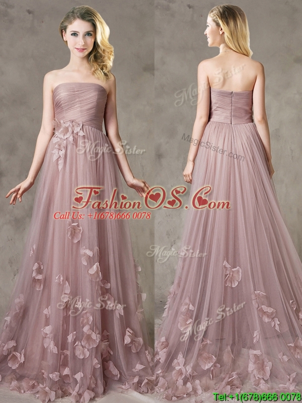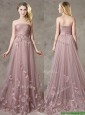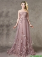 Home >  Prom Dresses >  Customized Prom Dresses > Classical Strapless Brush Train Prom Dress with Appliques
