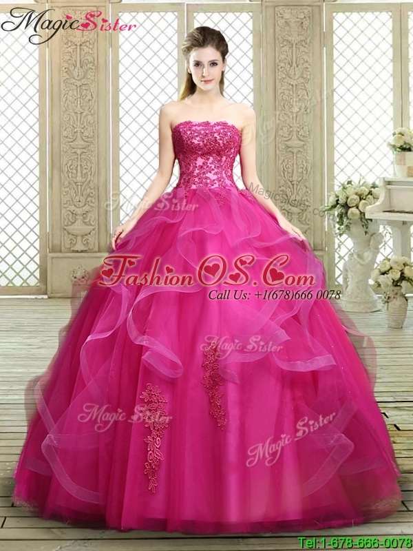 Classical Strapless Fuchsia Quinceanera Dresses with Appliques