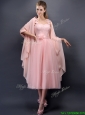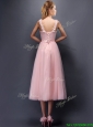 Classical Straps Baby Pink Prom Dresses  with Appliques and Hand Made Flowers