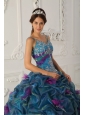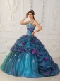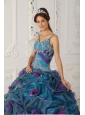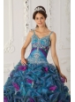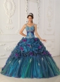 Home >  Quinceanera Dresses >  Popular Quinceanera Dresses > Classical Teal Quinceanera Dress Straps Chapel Train Organza Ball Gown