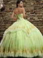 Classical Tulle Ruching and Appliques Quinceanera Dress in Yellow Green