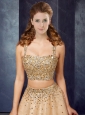 Classical Two Piece Straps Beaded Bodice Square Prom Dress in Tulle