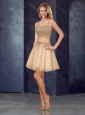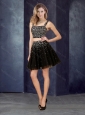 Home >  Evening Dresses > Classical Two Piece Straps Beaded Bodice Square Prom Dress in Tulle