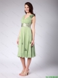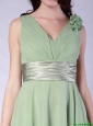 Classical V Neck Empire Hand Made Flowers and Belt Prom Dresses 2015