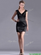 Classical V Neck Satin and Lace Mother of the Bride Dress with Cap Sleeves