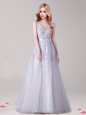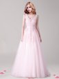 Classical V-neck Sleeveless Backless Baby Pink Tulle