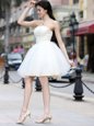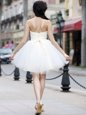 Classical White A-line Chiffon Strapless Sleeveless Beading Knee Length Lace Up Dress for Prom