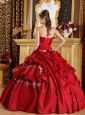 Classical Wine Red Quinceanera Dress Strapless Taffeta Appliques Ball Gown