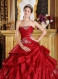 Home >  Shop By Color >  Quinceanera Dresses by Color >  Wine Red Quinceanera Dresses > Classical Wine Red Quinceanera Dress Strapless Taffeta Appliques Ball Gown