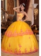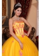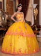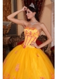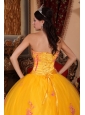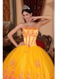 Classical Yellow Quinceanera Dress Strapless Organza Lace Appliques Ball Gown