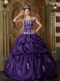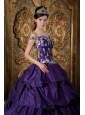 Home >  Quinceanera Dresses >  Cute Quinceanera Dresses > Classsical Purple Quinceanera Dress Off The Shoulder Taffeta Appliques Ball Gown