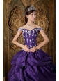 Classsical Purple Quinceanera Dress Off The Shoulder Taffeta Appliques Ball Gown