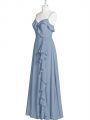Clearance A-line Prom Party Dress Blue Spaghetti Straps Chiffon Sleeveless Floor Length Zipper