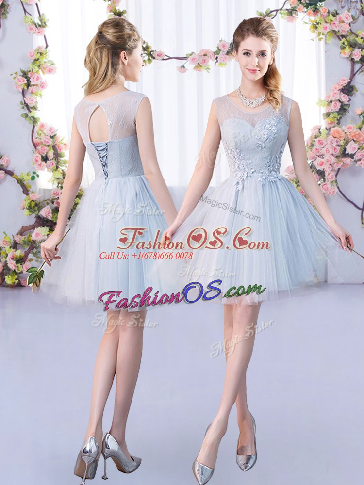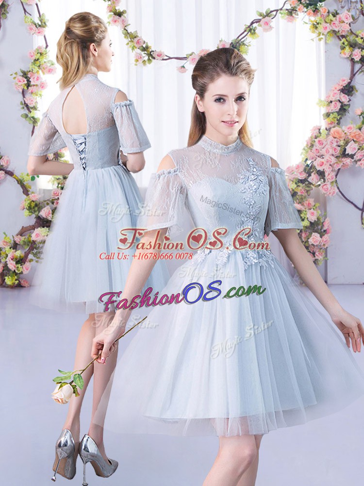 Clearance A-line Quinceanera Court of Honor Dress Grey Scoop Tulle 3 4 Length Sleeve Mini Length Lace Up