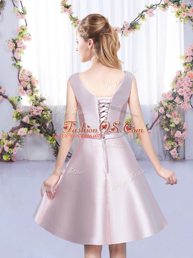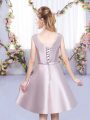Clearance Baby Pink Satin Lace Up Dama Dress for Quinceanera Sleeveless Mini Length Bowknot