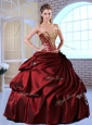 Clearance Ball Gown Taffeta Wine Red Quinceanera Dresses with Pick Ups