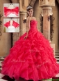 Clearance Beading and Ruffles Quinceanera Dresses  in Coral Red