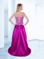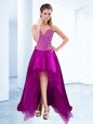 Home >  Prom Dresses >  Modest Prom Dresses > Clearance High Low Fuchsia Prom Gown Sweetheart Sleeveless Lace Up