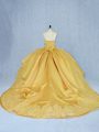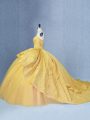 Clearance Lace Up Sweet 16 Dresses Gold for Sweet 16 and Quinceanera with Beading and Appliques Court Train