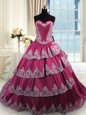 Home >  Quinceanera Dresses >  Puffy Quinceanera Dresses > Clearance Sleeveless Court Train Lace Up With Train Beading and Appliques and Ruffled Layers Ball Gown Prom Dress