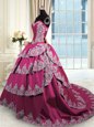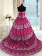 Clearance Sleeveless Court Train Lace Up With Train Beading and Appliques and Ruffled Layers Ball Gown Prom Dress
