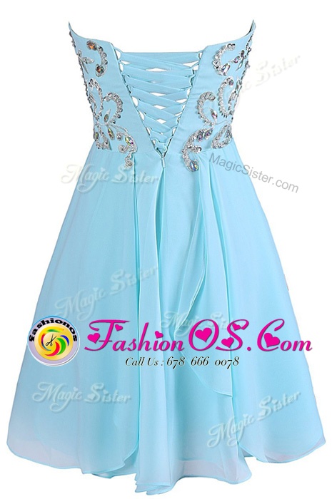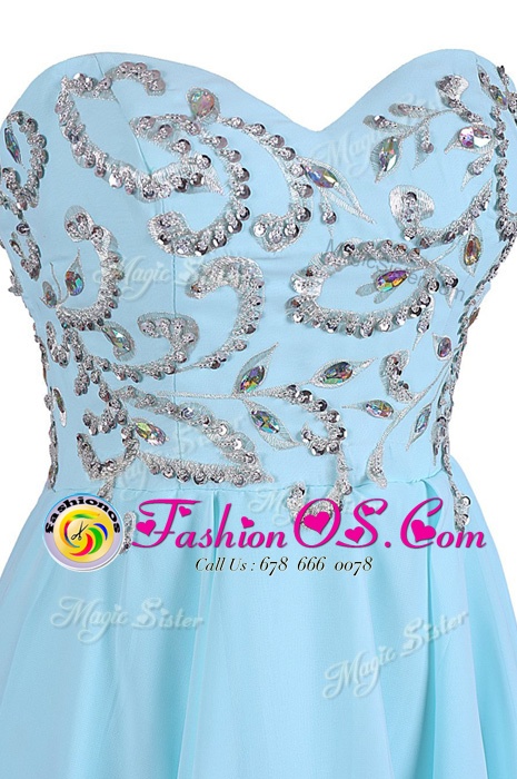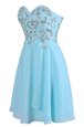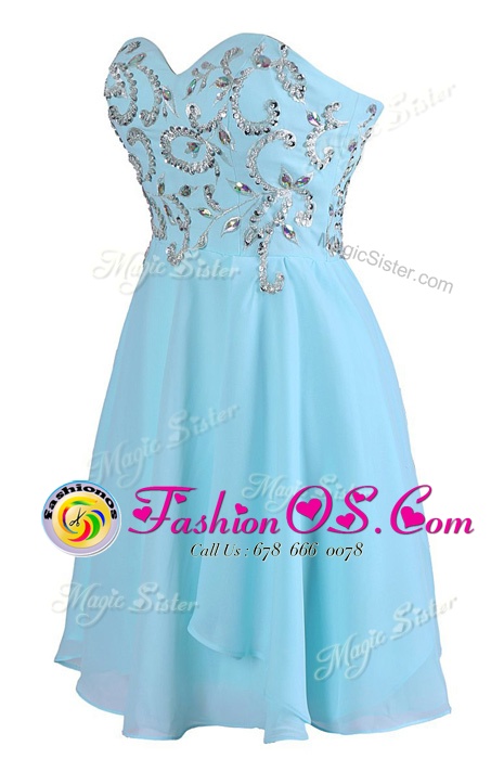 Home >  Prom Dresses >  Perfect Prom Dresses > Clearance Sleeveless Knee Length Embroidery Criss Cross Prom Evening Gown with Blue