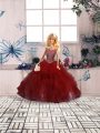 Clearance Sleeveless Organza Floor Length Zipper Quinceanera Dress in Burgundy with Beading and Ruffles