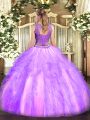Clearance Two Pieces Ball Gown Prom Dress Yellow Green Scoop Tulle Sleeveless Floor Length Lace Up
