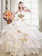 Home >  Quinceanera Dresses >  Discount Quinceanera Dresses > Clearance White Ball Gowns Beading and Ruffles Quinceanera Gown Lace Up Organza Sleeveless Floor Length