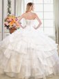 Clearance White Ball Gowns Beading and Ruffles Quinceanera Gown Lace Up Organza Sleeveless Floor Length