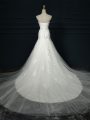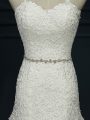 Clearance White Tulle Lace Up Sweetheart Sleeveless Bridal Gown Court Train Lace and Belt