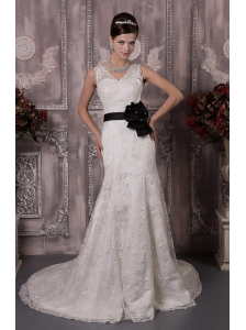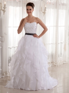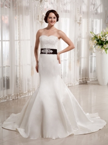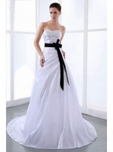 Black Sash Wedding Dress With Taffeta A-line Court Train Sweetheart