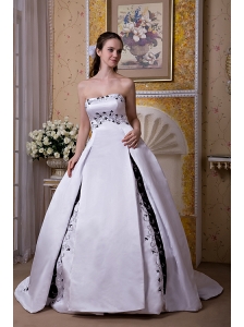 Elegant Ball Gown Strapless Wedding Dress Satin Embroidery Chapel Train