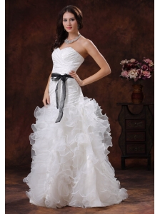 Black Sash Sweetheart Wedding Dress With Ruffled Layers In Alexander City Alabama