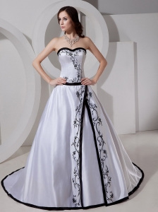 Sweetheart A-line Embroidery Taffeta Dropped Classical Custom Made Wedding Dress