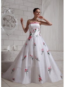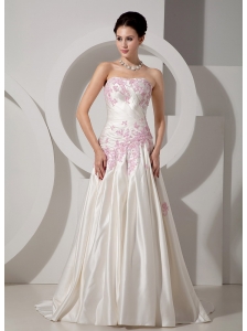 Classical Wedding Dress A-line Strapless Appliques Court Train Satin